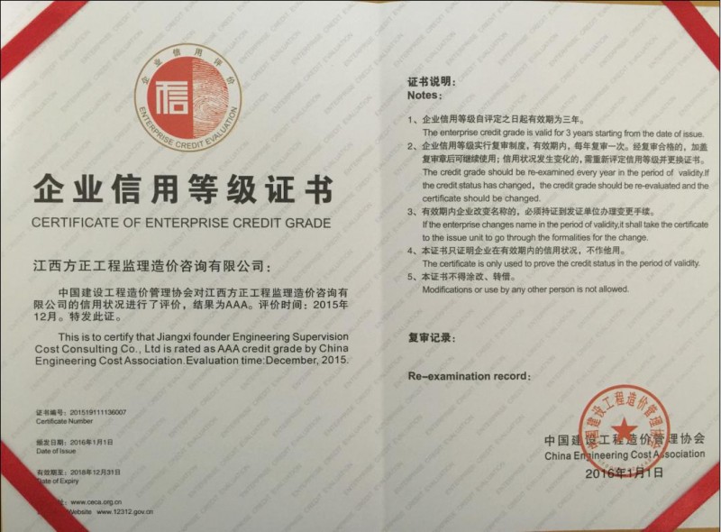 江西方正工程監(jiān)理造價咨詢有限公司于二OO三年五月在南昌市工商行政管理局注冊(注冊號:360100210024211),成立的有限責任公司,先后取得建設部及江西省建設廳頒發(fā)的建設施工工程造價咨詢企業(yè)資質(zhì)、招投標代理機構(gòu)資質(zhì)、工程監(jiān)理資質(zhì)及江西省財政廳頒發(fā)的采購代理資質(zhì),是專門從事工業(yè)與民用建筑工程造價咨詢、工程建設招投標代理、工程監(jiān)理及采購代理的公司。